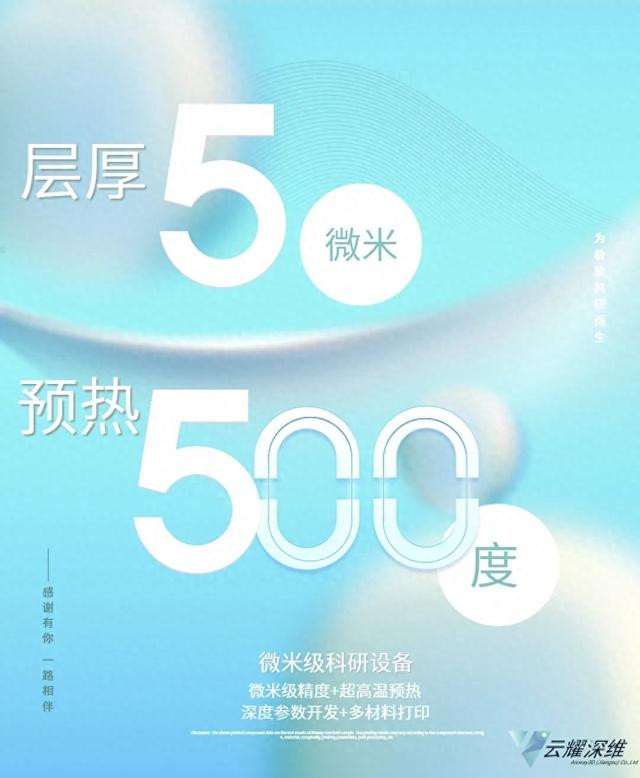 2025年4月,南极熊获悉,国内微米级金属3D打印龙头厂商云耀深维,宣布推出一款层厚5微米、预热达500℃的微米级经济型科研设备。